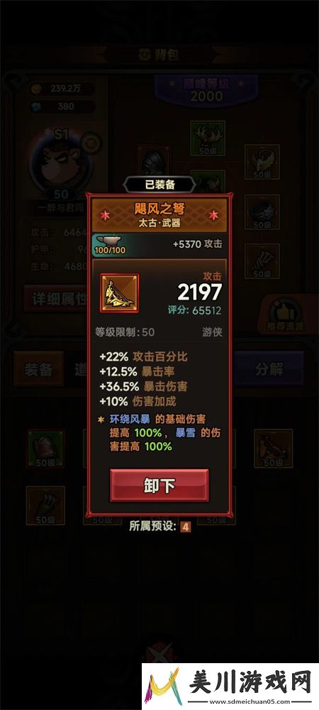 武器:飓风之弩+持鸣魔弓(最超标的弓,必带)